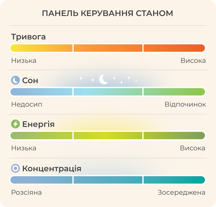 Не існує приладу, здатного виміряти стан нашого ментального здоров'я. Але є визнані ВООЗ та МОЗ України доказові тести, які можуть допомогти у цьому. Проходьте тестування на наявність та ступінь важкості розладів ментального здоров’я. Отримуйте результати, та рекомендації стосовно подальших дій.